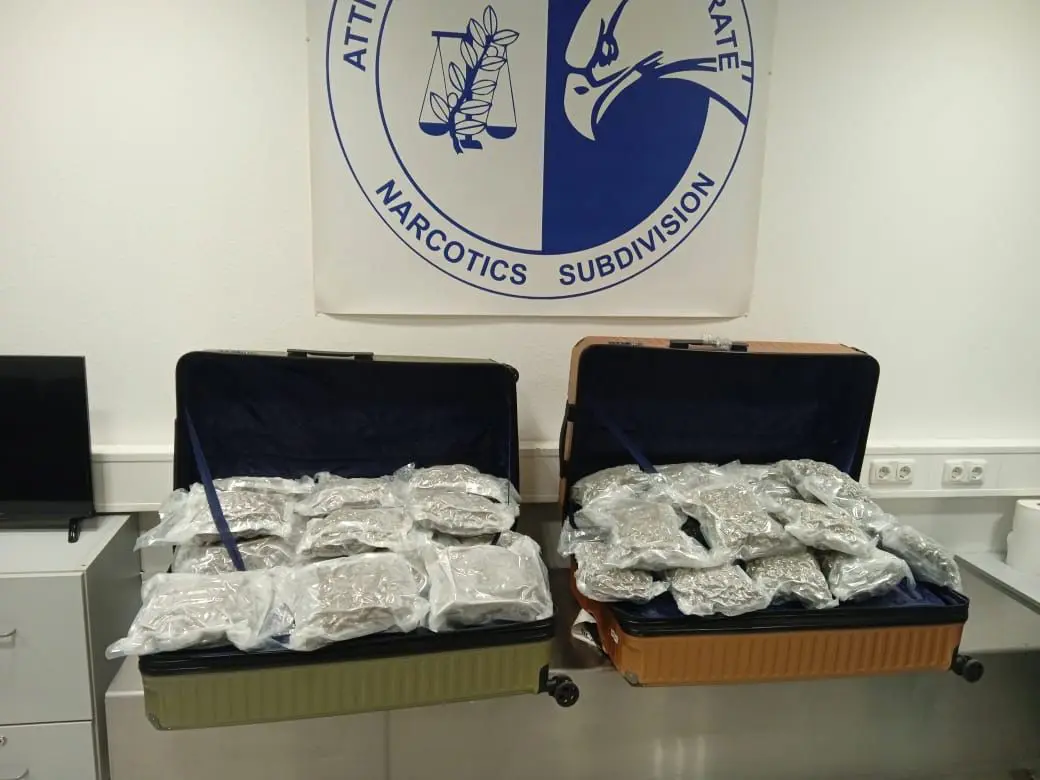 Στις αποσκευές των συλληφθέντων οι αρχές ανακάλυψαν 84 νάιλον συσκευασίες που περιείχαν κάνναβη υδροπονικής καλλιέργειας τύπου skunk. Το συνολικό βάρος των ναρκωτικών έφτασε τα 44 κιλά, ποσότητα που θα είχε μεγάλη αξία στη μαύρη αγορά.