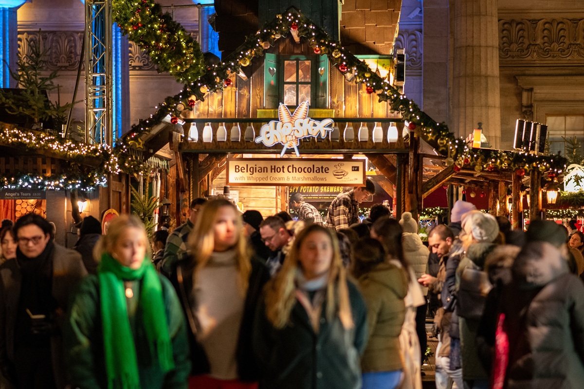Η Edinburgh Christmas Market στην πλατεία Princes Street Gardens είναι το κέντρο της γιορτινής δραστηριότητας. Εκατοντάδες πάγκοι προσφέρουν χειροποίητα δώρα, παραδοσιακά σκωτσέζικα προϊόντα και γιορτινά διακοσμητικά. Το glühwein και τα ψημένα κάρυδα ζεσταίνουν τους επισκέπτες, ενώ η ατμόσφαιρα γίνεται ακόμα πιο μαγική με τα χριστουγεννιάτικα τραγούδια που ηχούν παντού.