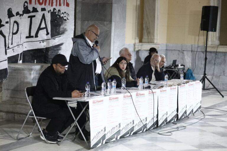 Ανάμεσα στους παρευρισκόμενους βρέθηκαν συγγενείς θυμάτων της τραγωδίας των Τεμπών, αγωνιστές της εξέγερσης του ’73 και μέλη της πανεπιστημιακής κοινότητας. Ο Πάνος Ρούτσι, πατέρας του 22χρονου Ντένις που έχασε τη ζωή του στα Τέμπη, και ο Ηλίας Παπαγγελής έδωσαν το «παρών» σε μια εκδήλωση που συνέδεσε το χθες με το σήμερα.