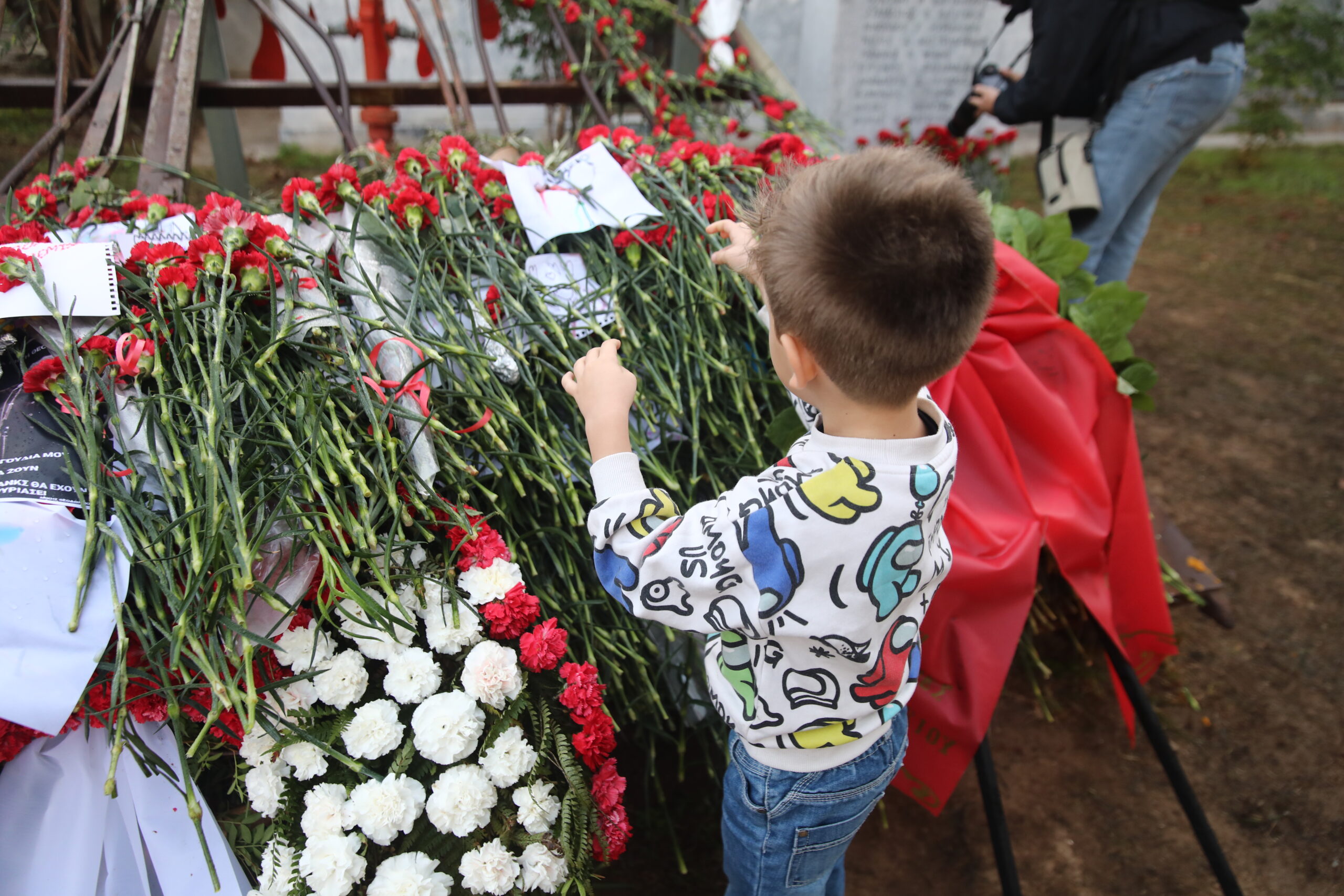 Λουλούδια και ζωγραφιές στο μνημείο