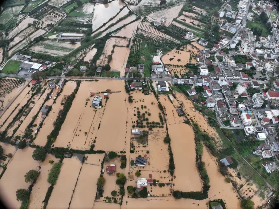 Οι εικόνες από ψηλά δείχνουν χιλιάδες στρέμματα καλλιεργήσιμης γης κάτω από το νερό, με τις ζημιές να είναι ακόμη αδύνατο να υπολογιστούν. Πολλοί αγρότες της περιοχής που μόλις είχαν αρχίσει να ανασυντάσσονται από τις φωτιές του καλοκαιριού, βρίσκονται τώρα αντιμέτωποι με νέες απώλειες.