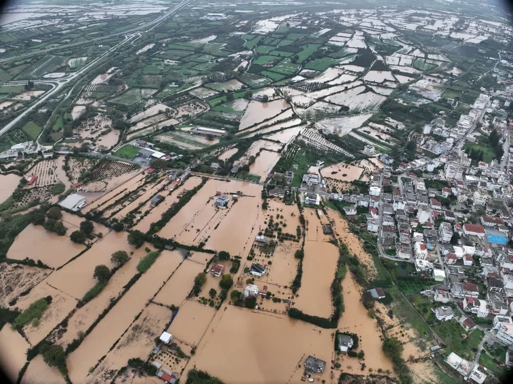 Τεράστιες εκτάσεις έχουν μετατραπεί σε λίμνες λάσπης, ενώ οι δρόμοι της περιοχής μοιάζουν με χειμάρρους από την ορμή των νερών. Η βροχόπτωση των τελευταίων ωρών προκάλεσε εκτεταμένες πλημμύρες που έπληξαν κυρίως αγροτικές εκτάσεις και υποδομές.