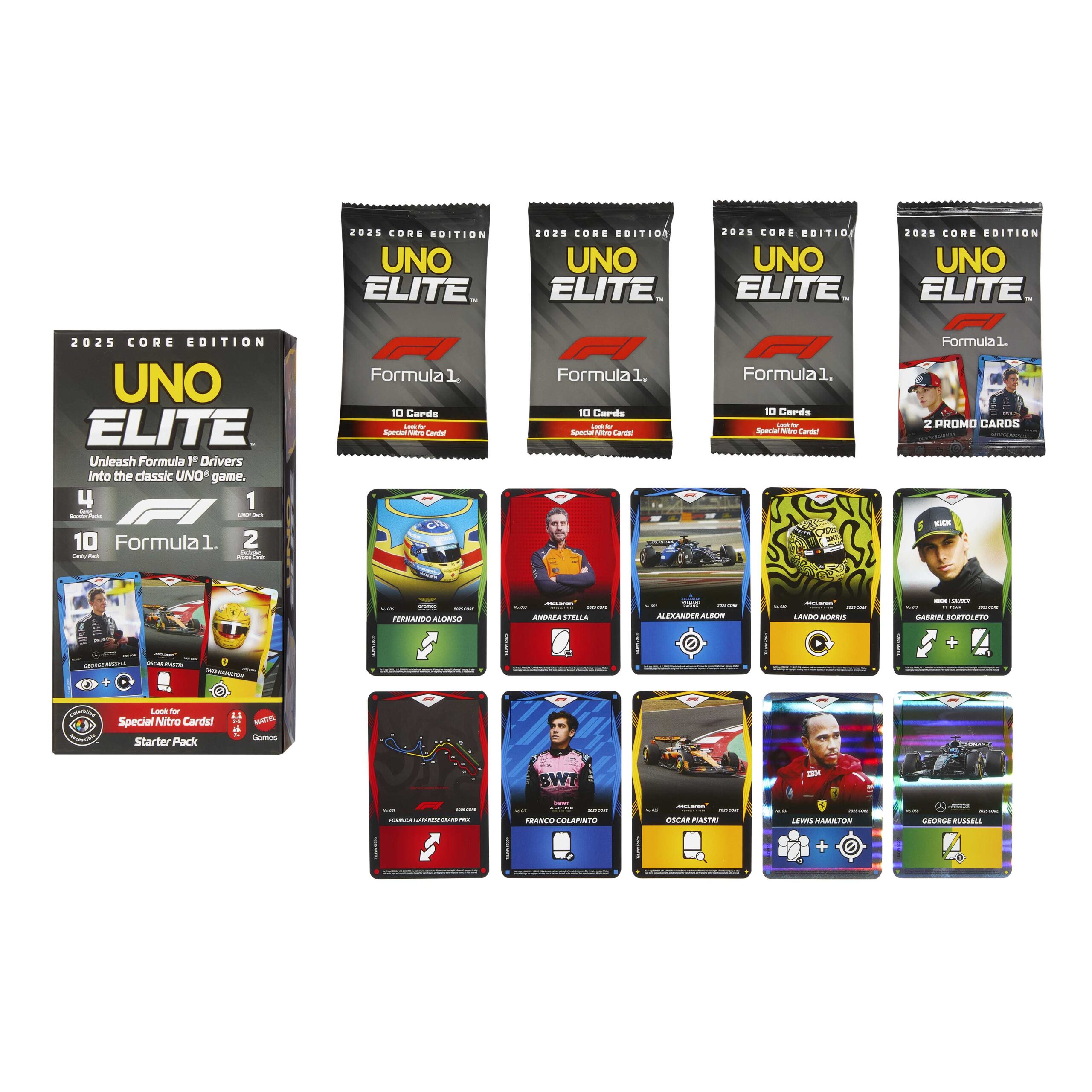 Η Mattel ανακοίνωσε την κυκλοφορία του UNO Elite Formula 1, μιας νέας έκδοσης του δημοφιλούς παιχνιδιού που φέρνει τον κόσμο των αγώνων στο τραπέζι. Η νέα αυτή προσθήκη στη σειρά UNO Elite συνδυάζει την απλότητα του κλασικού παιχνιδιού με την ταχύτητα και το δράμα της Formula 1. Οι παίκτες θα μπορούν να παίξουν με κάρτες που απεικονίζουν οδηγούς και μονοθέσια από όλες τις 10 ομάδες του πρωταθλήματος.
