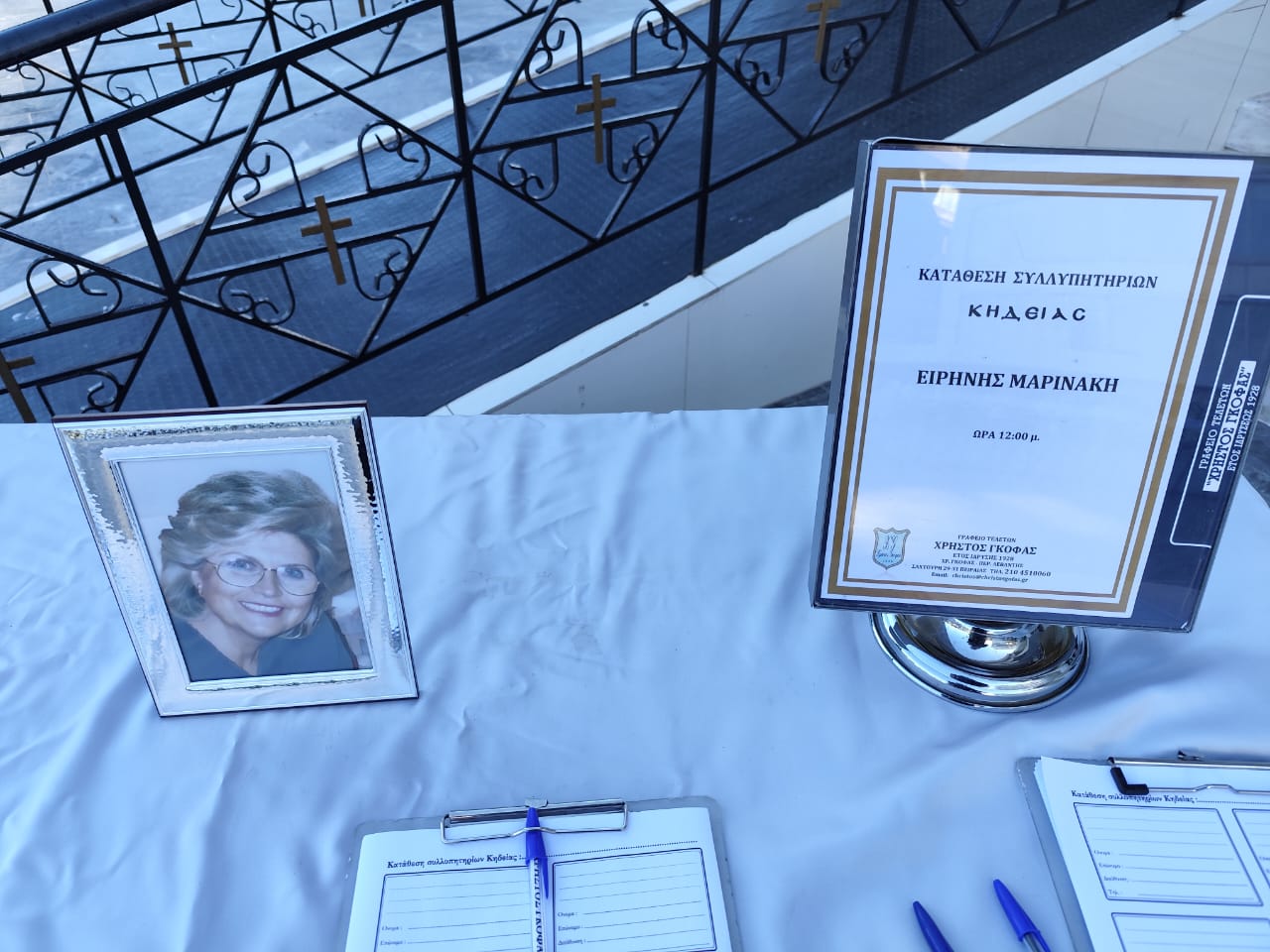 Συγγενείς, φίλοι και εκατοντάδες Πειραιώτες συγκεντρώθηκαν για να αποχαιρετήσουν την γυναίκα που όσοι τη γνώριζαν περιγράφουν ως άνθρωπο με ζωή γεμάτη φως και δημιουργία. Η σορός μεταφέρθηκε στον ναό λίγο μετά τις 10 το πρωί, ενώ ο χώρος είχε γεμίσει από νωρίς με στεφάνια από όλη την Ελλάδα.